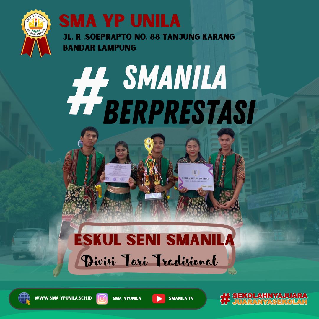 Selamat & Sukses atas prestasi yang diraih oleh, anggota Eskul Seni Smanila Divisi Tari Tradisional: 1. Putu Resi XII IPA 4 2. Adzka Ulia XI.1 3. Aditya Ananto Yudistira XI.1 4. M. Rafli Akbar XI.3 5. Ales Syfa Kamila XI.7 …