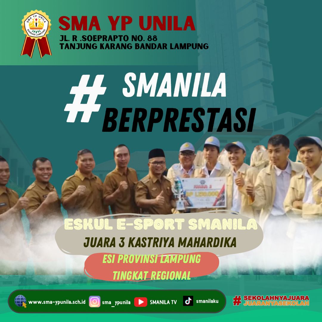 Selamat & Sukses atas prestasi yang diraih oleh, anggota Eskul E-Sport Smanila, meraih Juara 3 Pada Event Kastriya Mahardika 2023 (Lokapala): 1. Alvaj Levy Latiffaziz (X.1) 2. Muhammad Alief Putra Sheraz (X.8) 3. Dimaz Fadey Faeyza (X.3) 4. Muhammad Faizin …