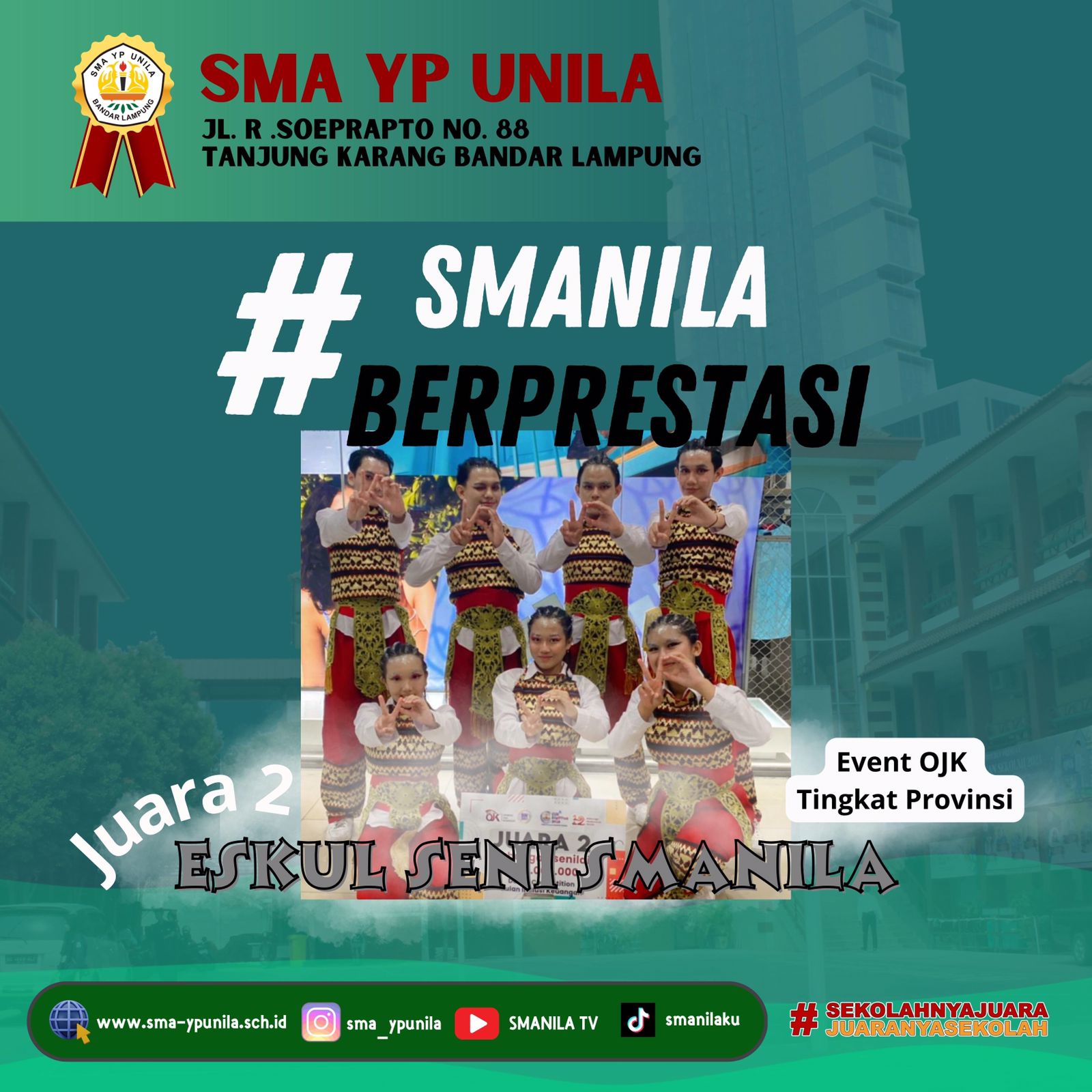Selamat & Sukses atas prestasi yang diraih oleh, anggota Eskul Seni Smanila: Nama : 1. Aditya ananto yudistira XI.1 2. M alkhairi XII IPA 4 3. Syamil rasyid XI. 5 4. Amanda puspa ananta X.9 5. Quaneisha Farras Kadzia T …