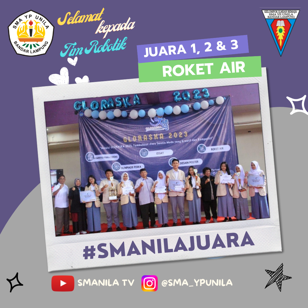Selamat kepada TIM Robotik SMA YP Unila dari Ekskul KIR (Karya Ilmiah Remaja) yang telah meraih Juara 1, 2 dan 3 pada acara GLORASKA FKIP Universitas Lampung Tahun 2023 Semoga prestasi yang membanggakan ini dapat menginspirasi rekan-rekan yang lain. #smanilajuara #2023yepeaja #sekolahfavorit #bandarlampung #lampung …