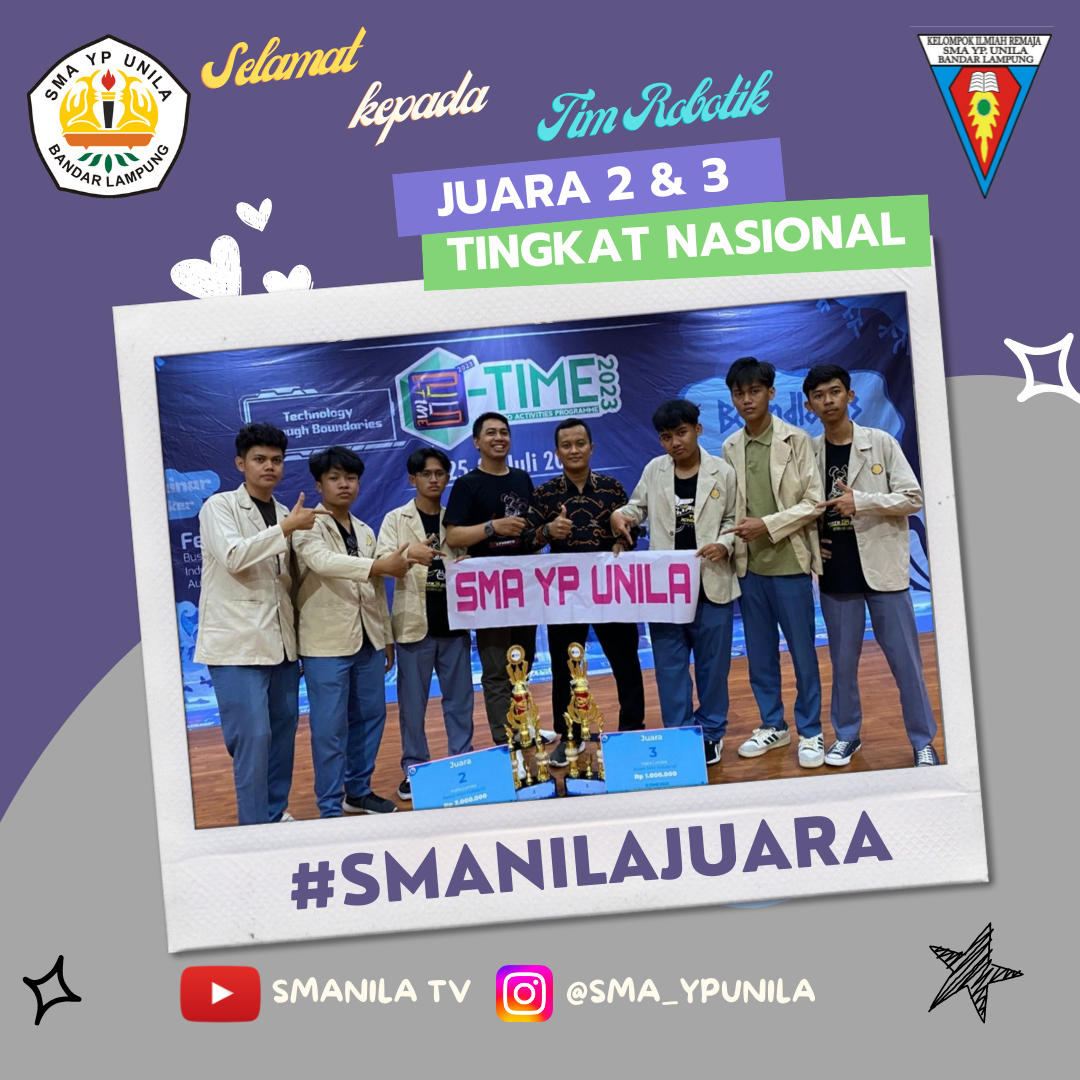 Selamat kepada TIM Robotik SMA YP Unila dari Ekskul KIR (Karya Ilmiah Remaja) yang telah meraih Juara 2 dan 3 tingkat Nasional kategori umum pada perlombaan yang di selenggarakan oleh Politeknik Negeri Jakarta Tahun 2023 Semoga prestasi yang membanggakan ini …