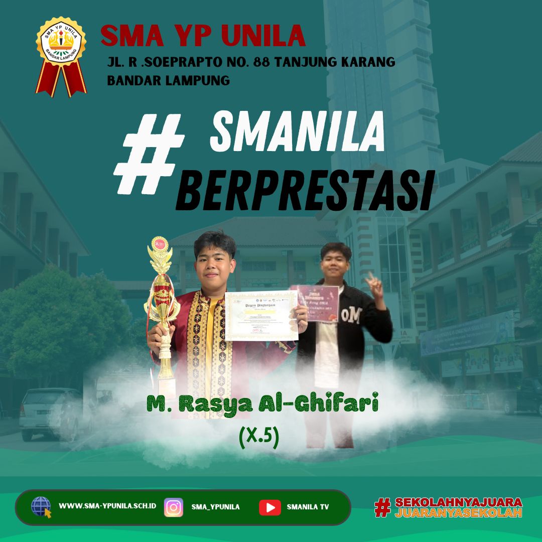 Selamat & Sukses atas prestasi yang diraih oleh: Nama : M. Rasya Al-Ghifari Kelas : X.5 Sebagai peraih, Juara 1 Lomba Got Talent (Solo Song) DKL tingkat Provinsi dan peraih Juara Harapan 3 Lomba Solo Song Smanda Olympic Tingkat Provinsi …
