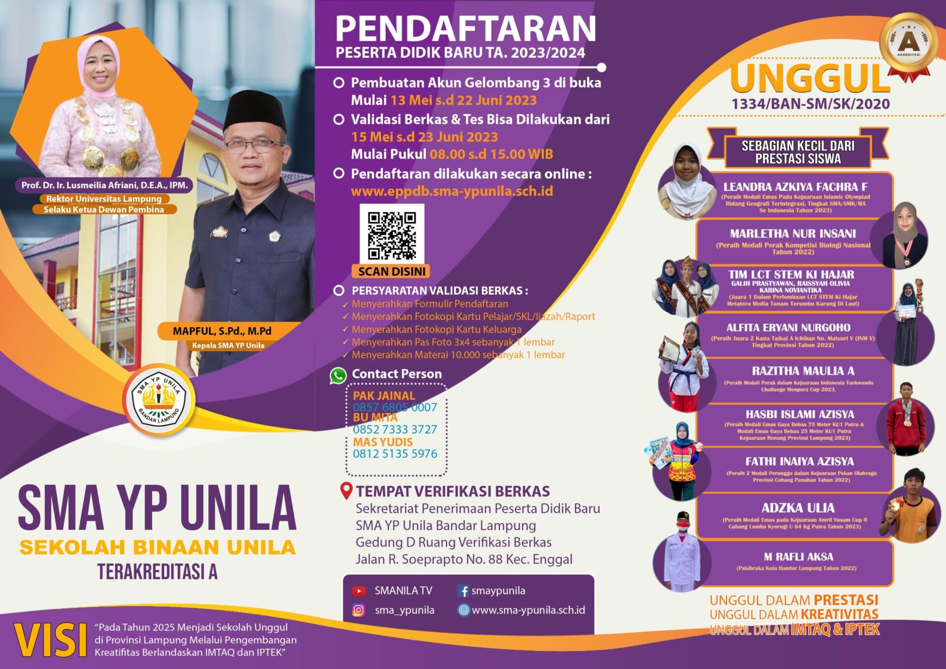 PPDB GELOMBANG 3 DIBUKA Hai adik adik kelas 9 yang saat ini bingung mau lanjut SMA kemana, SMA YP Unila mau mulai membuka penerimaan peserta didik baru tahun 2023/2024 loh. PPDB SMA YP Unila Gelombang 3 akan mulai pada : …