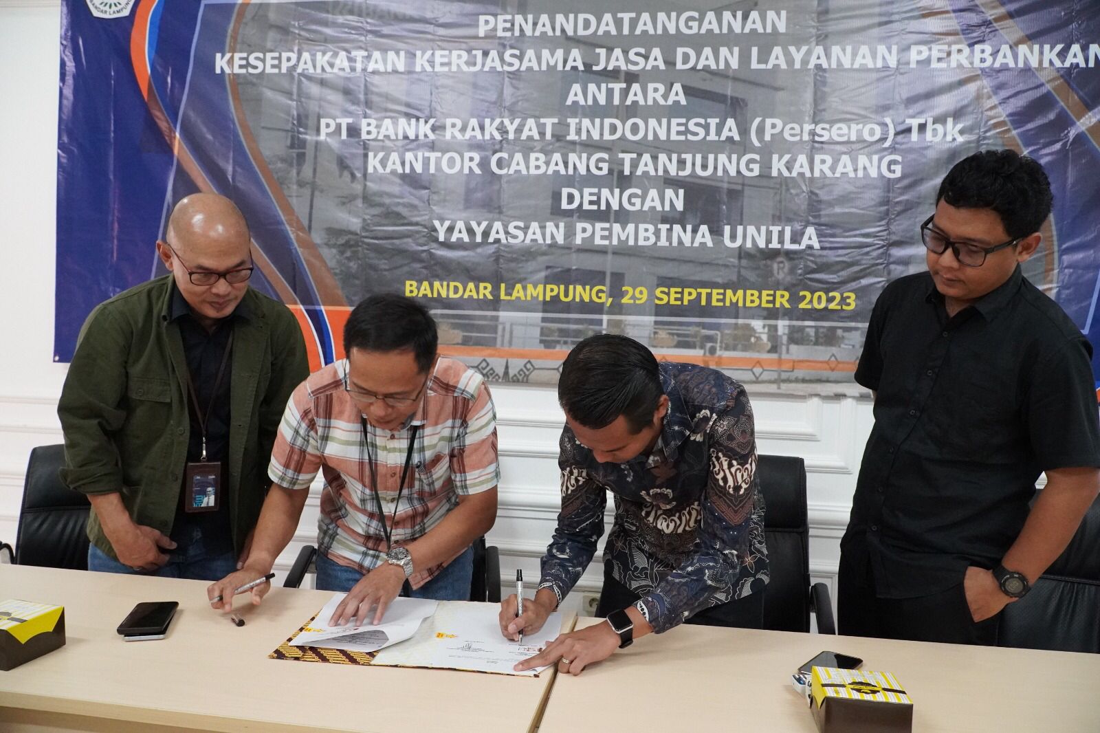 Jumat, 29 September 2023 pukul 09.50 telah dilaksanakan MoU Jasa & Layanan Perbankan yang di lakukan oleh PT. Bank BRI Kantor Cabang Tj. Karang dengan YP Unila. Pelaksanaan kegiatan bertempat di Ruang Sidang YP Unila, kegiatan di hadiri …