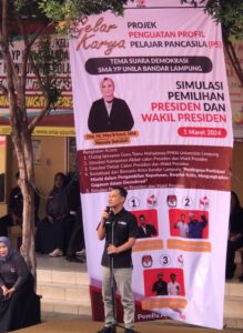 (Humas SMA YP Unila Bandarlampung) – Kamis, 29 Februari 2024, telah dilaksanakan puncak dari pelaksanaan Gelar Karya P5: Suara Demokrasi SMA YP Unila Bandarlampung “Simulasi Pemilihan Presiden dan Wakil Presiden 1 Maret 2024”.